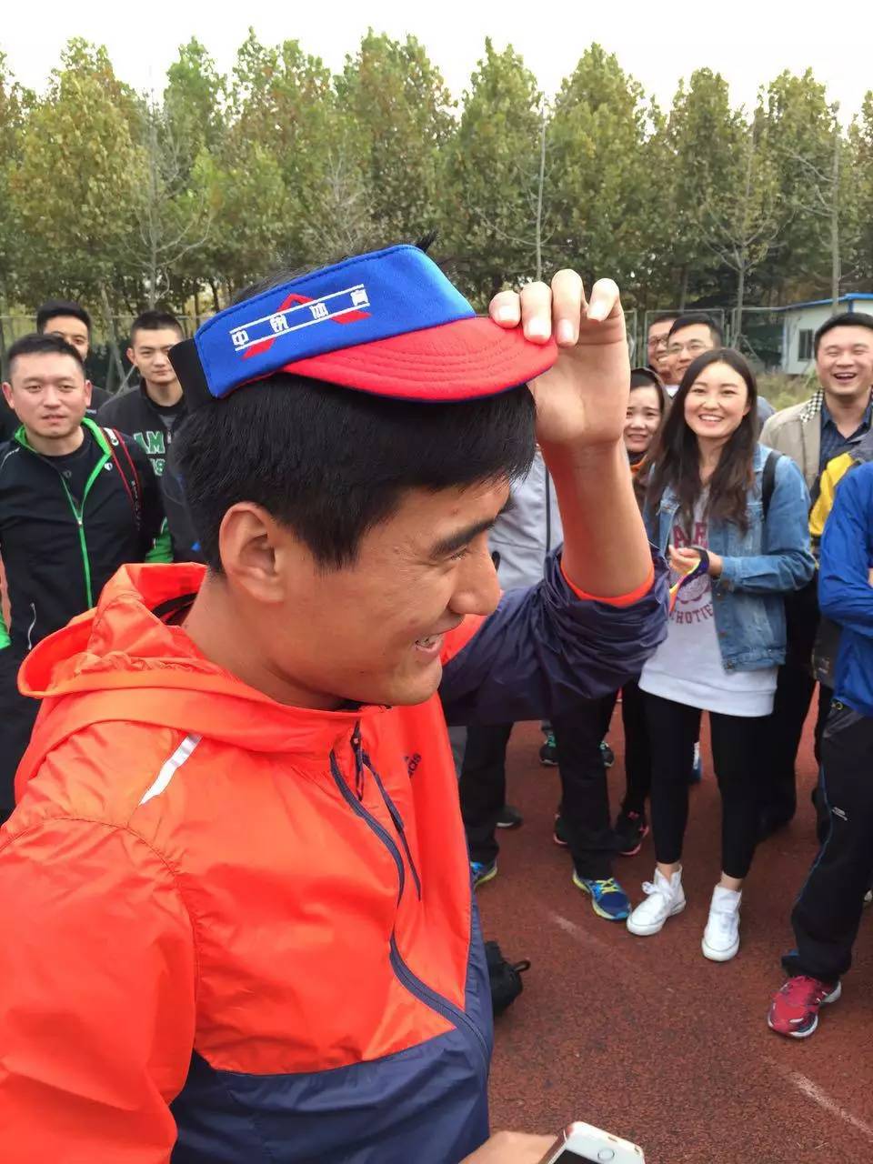 跑友積極踴躍,李少壯干脆摘下自己的帽子送給跑友